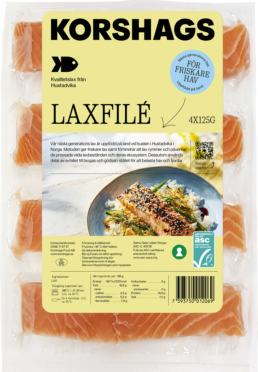Vi behöver nya sätt att föda upp havsmat på, och vi på Korshags vill leda utvecklingen. Därför presenterar vi exklusivt nästa generations lax och räka, uppfödda på land. De kompletterar övrigt sortiment med ytterligare hållbarhetsfokus - ett viktigt steg i rätt riktning.